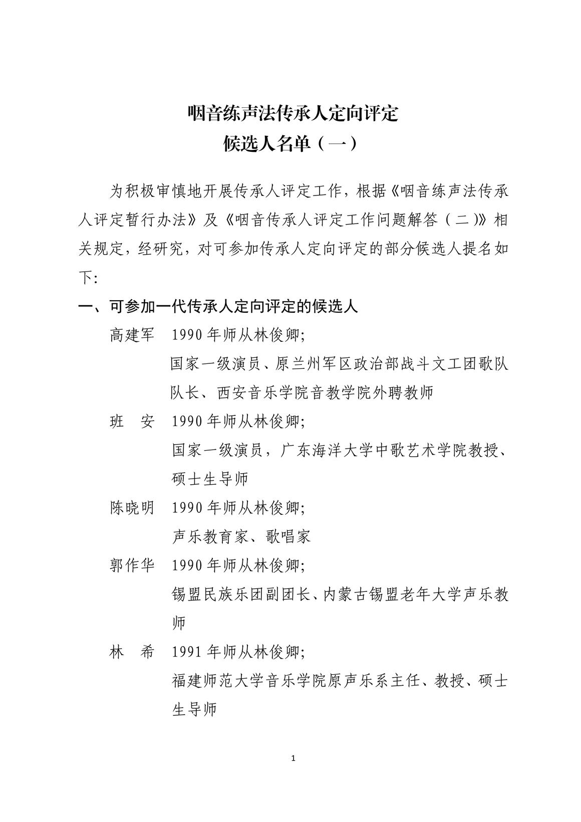 咽音練聲法傳承人定向評(píng)定候選人名單(一)